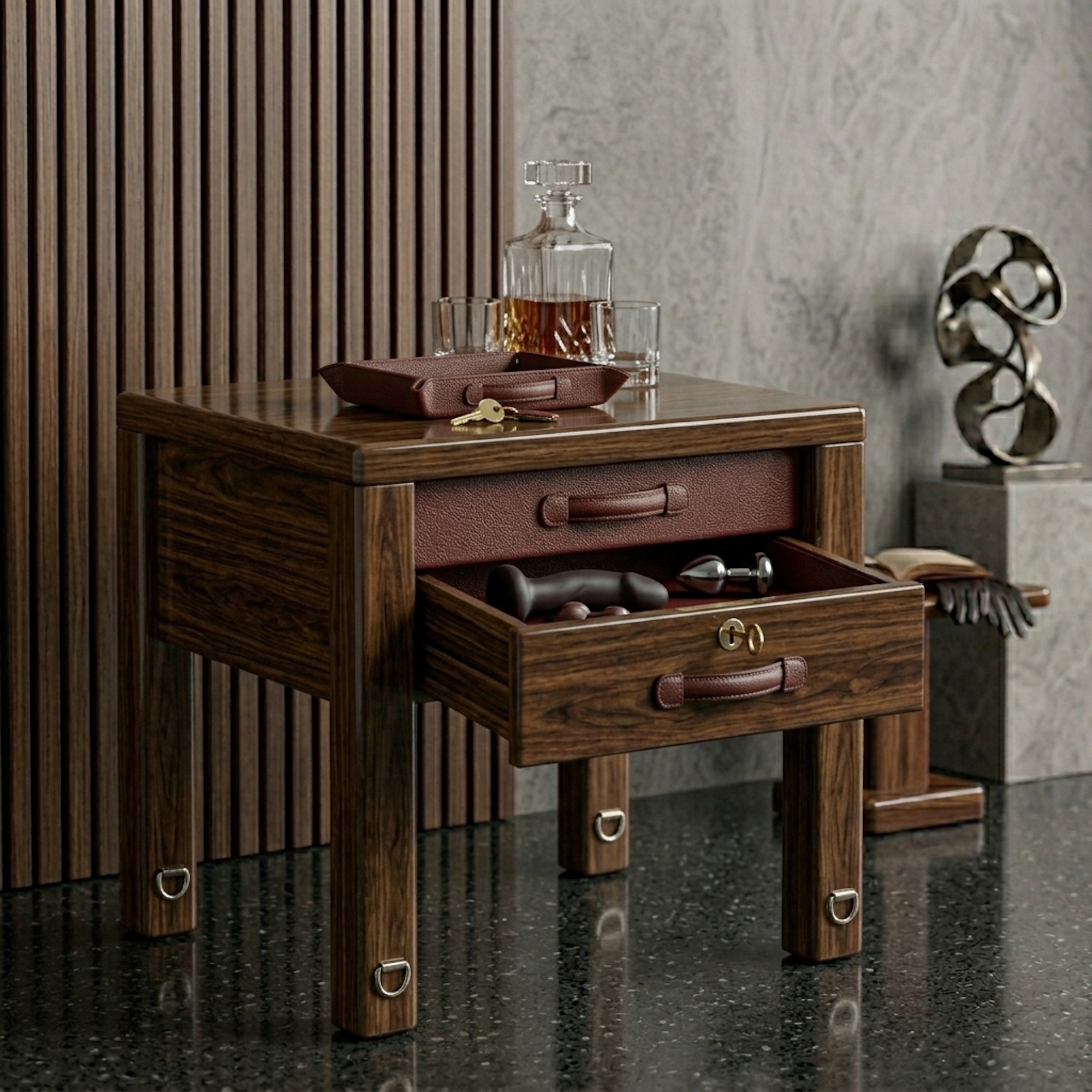 This guide is the gold standard for practitioners who value discretion above all else. Most “stealth” furniture looks cheap or suspicious, but our Hidden-Restraint Side Table is designed as a legitimate piece of high-quality bedroom furniture. It features hidden, recessed D-rings that are completely invisible until you need them, and a reinforced internal frame that can handle the lateral tension of restraint. It even includes a lockable drawer for secure toy storage, keeping your private life private.
